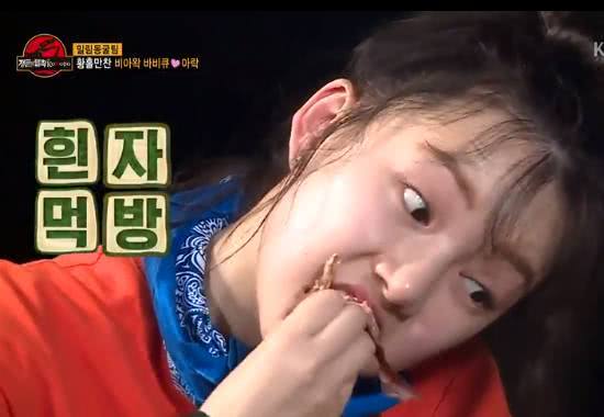 当这道炭烤蝙蝠送到嘉宾们的嘴边,雪炫也是盛情难却,接过后艰难的撕咬咀嚼着。或许是为了综艺效果,又或者为了凸显节目的真实性,从呈现的镜头来看,雪炫吃得算是“津津有味”。而刚接触到炭烤蝙蝠时纠结的小表情却出卖了她的心思,看得出雪炫对这道美食相当排斥,但是又不得不面对镜头吃下去。