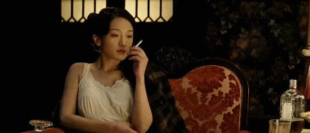 她和周迅双姝彼此成就,昏昏灯火下,一个补旗袍,一个夹着烟回望,美得让人心疼。