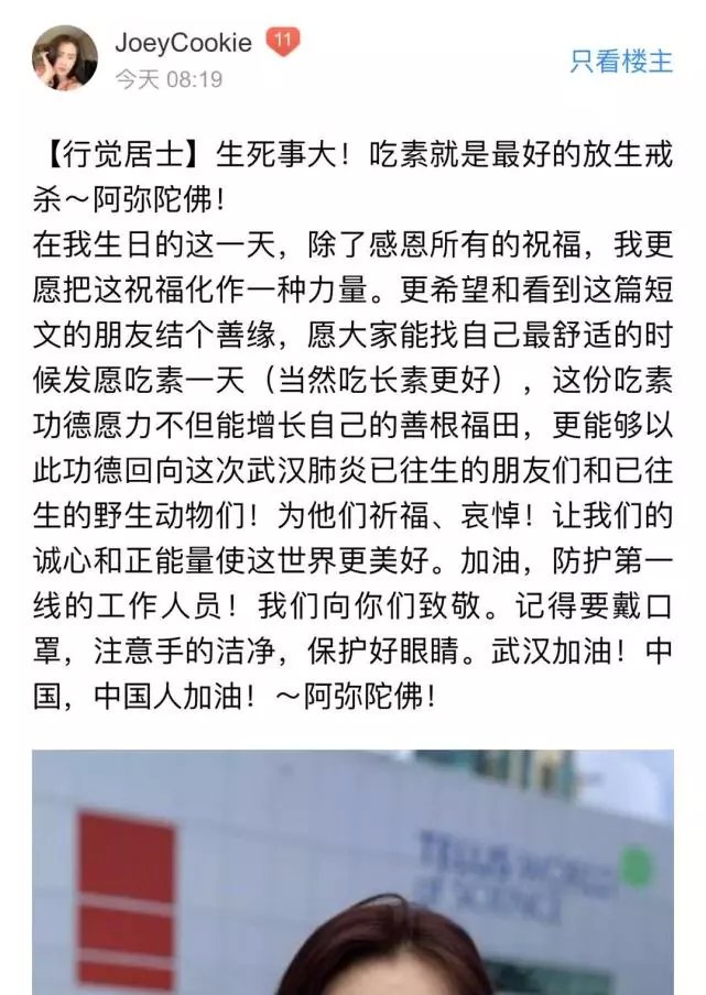 她发布了长文,为武汉的病人祈福,希望大家用诚心以及正能量使这个世界更美好!
