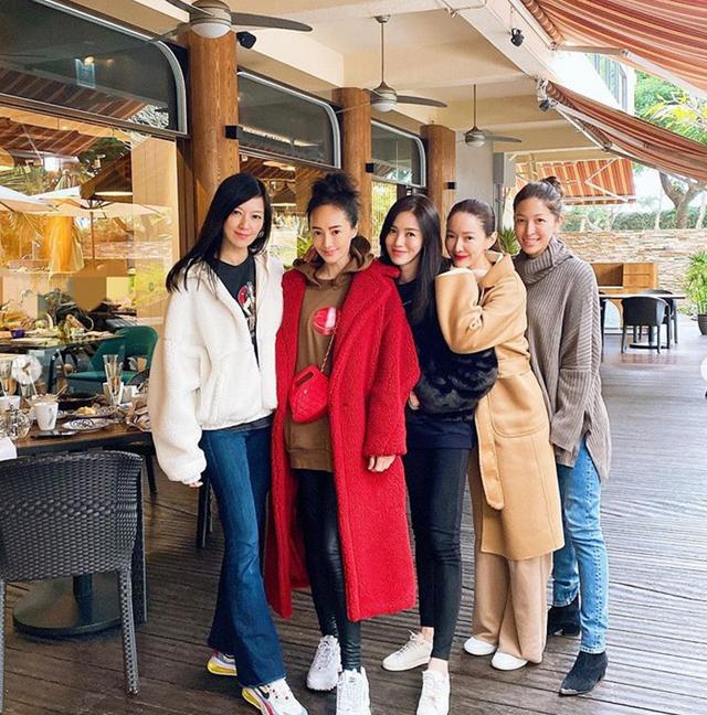 阔太林牧洁是新生代企业家,有能力有才华,还有个非常有钱的老公,在名媛团中地位也不容小觑,所以合影时她和关颖基本上都是占据中心位置。