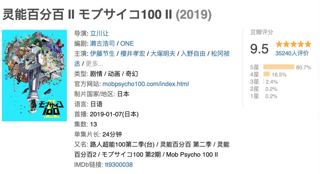 1、去年首推应该就是《灵能百分百》了,真是太爱这个剧了