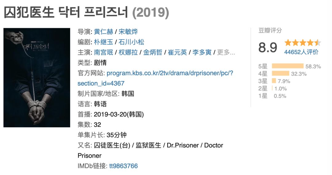 2、同样是南宫珉主演的高分好剧,《囚犯医生》,也是很受好评了
