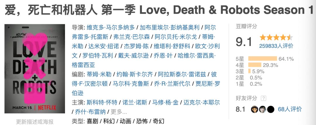 6、《爱,死亡和机器人》也是要说下的,毕竟是去年的网红动画。