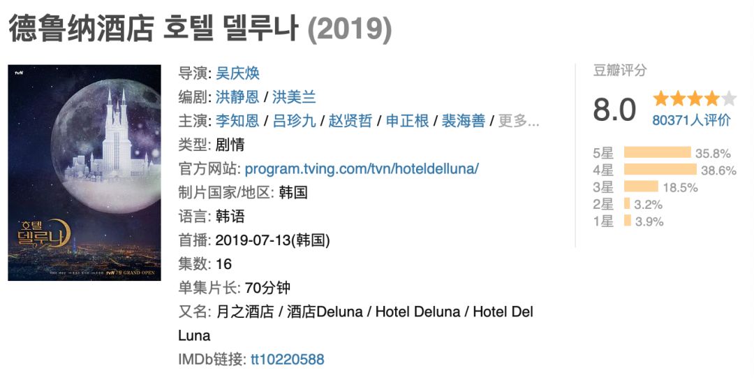 5、李知恩主演的《德鲁纳酒店》之前评价也很好,可惜最后有点烂尾了。