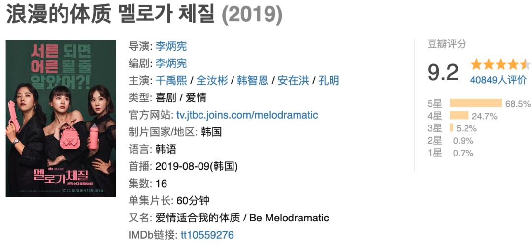4、另外,爱情剧《浪漫的体质》,我们也是诚意推荐了,豆瓣现在9.2分,