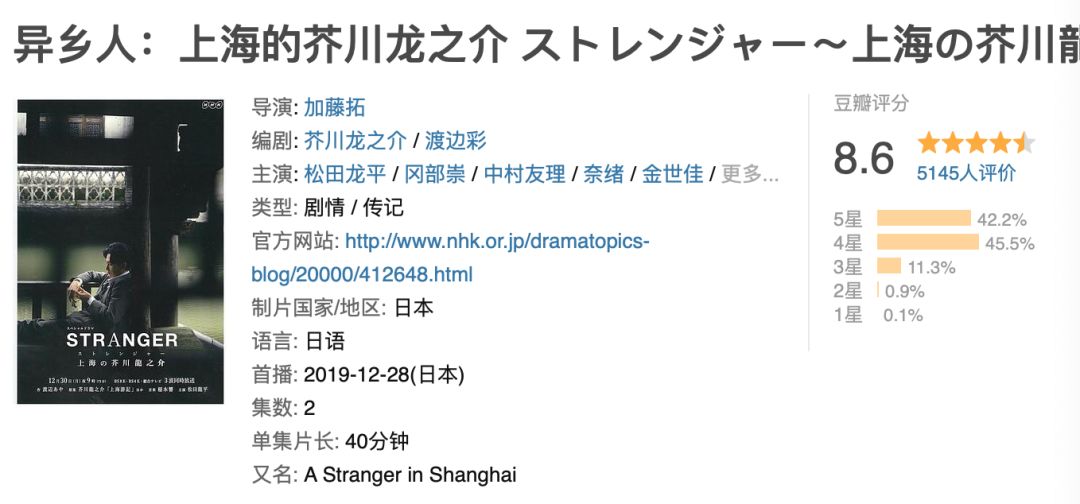 9、最后,年初的电视电影,《异乡人:上海的芥川龙之介》,也是不错的。