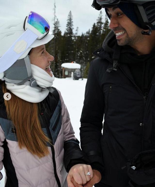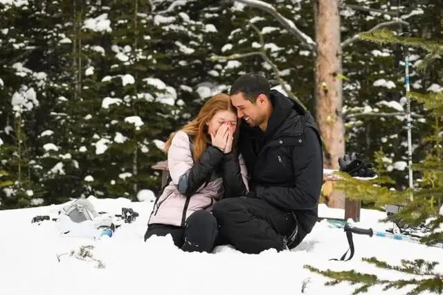 男友的求婚别有一番创意,可以说给了珍妮弗一个又惊又喜的求婚仪式。他与珍妮弗一起相约滑雪,在雪地里掏出一枚硕大的钻石戒指,向女友正式求婚。