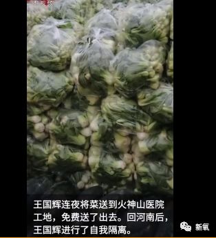 小到个人,河南村支书王国辉,凭自己在部队当后勤主管的经验,着急工地的物质供应,于是号召村民收了5吨蔬菜,大年三十这天赶往火神山医院工地。