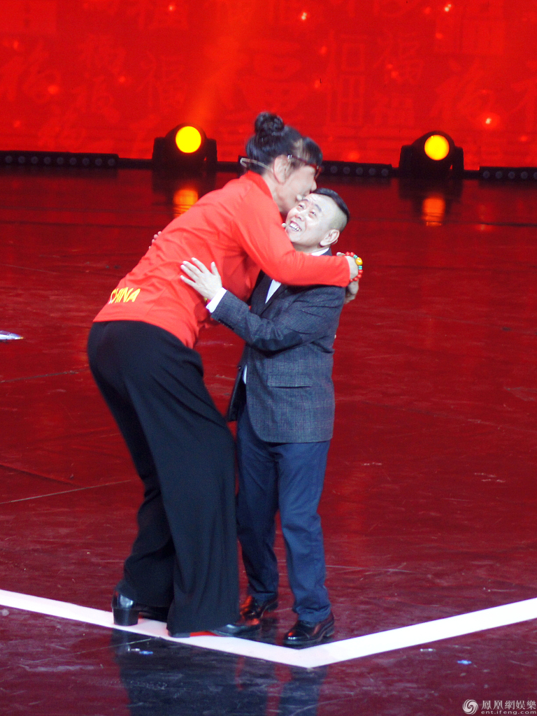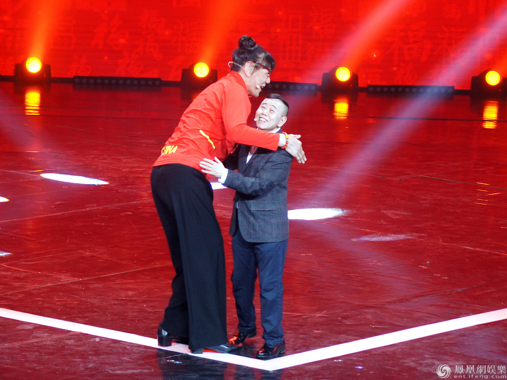 潘长江与女篮运动员郑海霞同台组“最萌身高差” ,两人还拥抱热聊互动热聊。