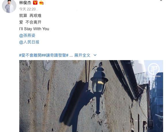 感谢林俊杰和孙燕姿在这样的非常时刻给大家带来了这样一首温暖的歌曲,也感谢每一位在此次疫情中对武汉伸出过援手的明星及普通人。