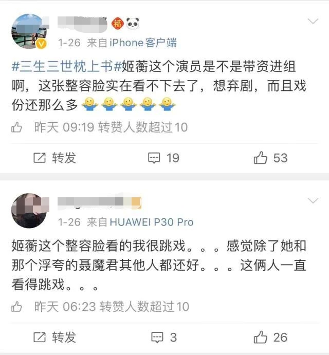 刘雨欣在《三生三世枕上书》中饰演女二号——魔族长公主姬蘅,网友普遍对这个角色没有好感,纷纷留言开骂:
