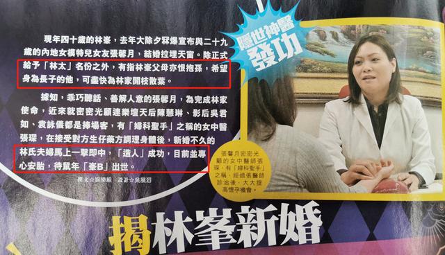 如今40岁的林峯自从去年12月底公布与29岁的张馨月结婚,正式让女友升级为林太太,有指林峯的父母也希望身为长子的他能尽快为家里开枝散叶,完成抱孙的心愿。
