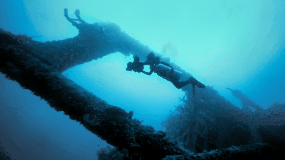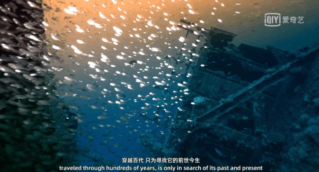 鱼群游过沉船,这艘巨轮也在水底获得了新生。