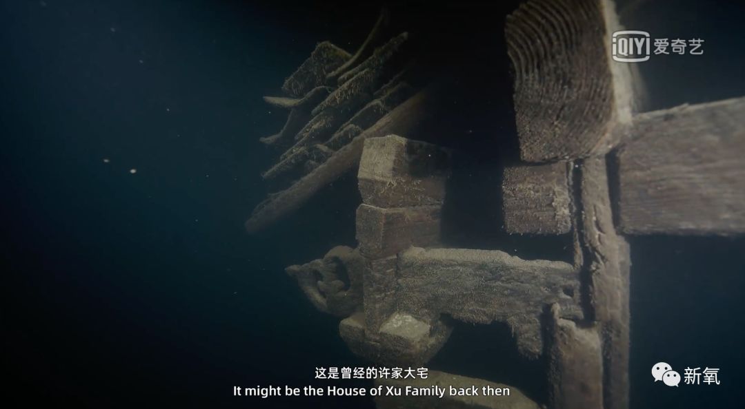 而水下的民宅,则更有生活气息,从门头的牌匾,精美的廊檐,似乎都能看到这里有人曾用心生活过的痕迹。