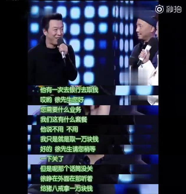 黄渤讲过一个关于徐峥的段子:有一次徐峥去银行取钱,工作人员面带微笑很有礼貌:“徐先生,请问您要办理什么业务?”“我要取一万块钱。”“好的,您稍等。”咔!工作人员业务娴熟地关闭窗口,却忘了摁掉话筒,转过脸就吆喝道:“哎哎哎!给猪八戒拿一万块钱!”
