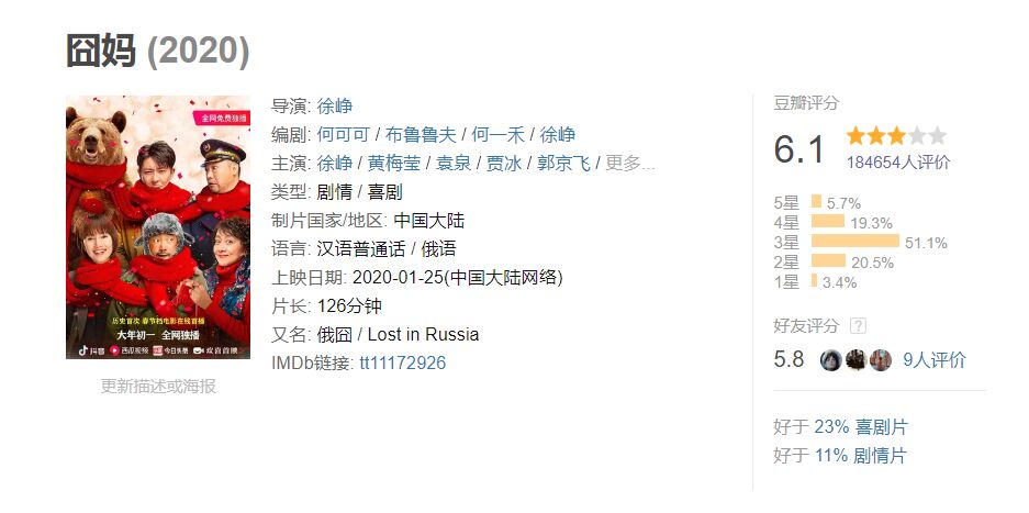 再来说说电影本身。网络播放不过2天,电影在豆瓣已有19万人标记看过,评分6.1分,刚好在及格线之上。这个评分更显示出了徐峥的聪明。