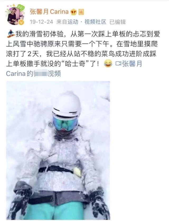 12月24日,张馨月在社交网上传自己在雪地飞驰的英姿,这种样子又怎会是怀孕呢?