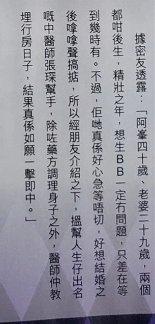 其实,张馨月才29岁,林峯也不过是40岁,都正值壮年,刚结婚就去找医生调理身体急着怀孕的可能性似乎并不大。