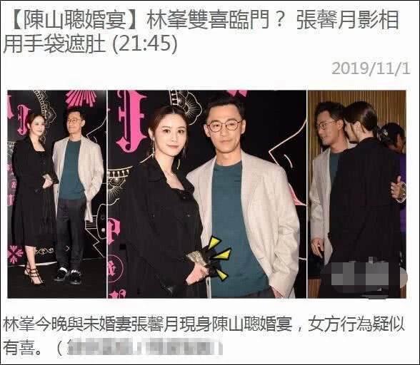 去年11月,林峯与张馨月合体参加陈山聪的婚礼,张馨月在拍照全程拿手袋遮住,当时已引来怀孕疑云。
