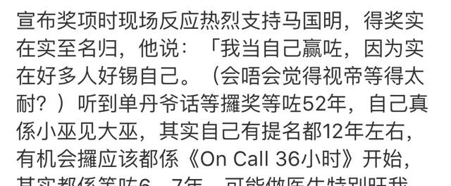 总之,这个奖对于马国明可以说是“虽迟但到”了,撒花祝贺!!
