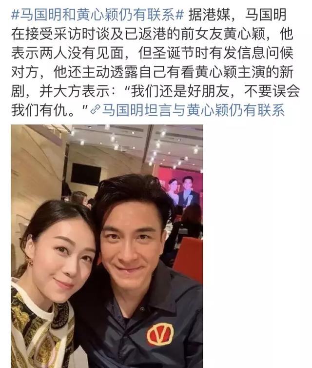 一月初黄心颖返回香港,马国明再次被问及这个话题,大方回应“我们还是好朋友,不要误会我们有仇”。