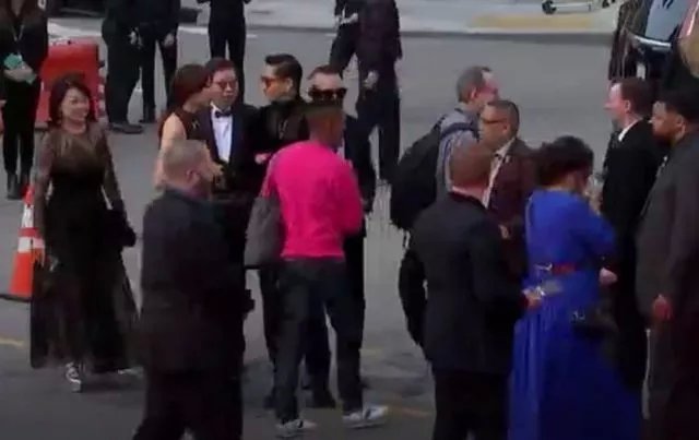 两人在红毯上高调秀恩爱。