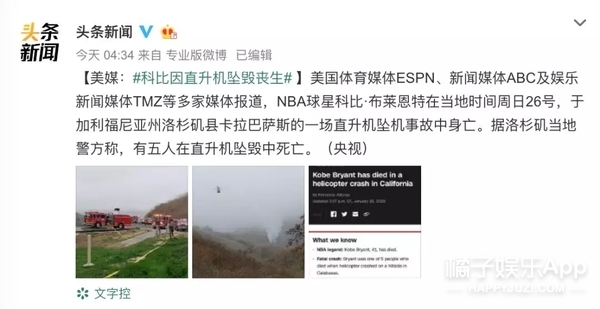 一个更令人心碎的新闻出现了。据美媒报道,前洛杉矶湖人队球员和五届NBA冠军科比·布莱恩特在一次直升机事故中不幸去世。