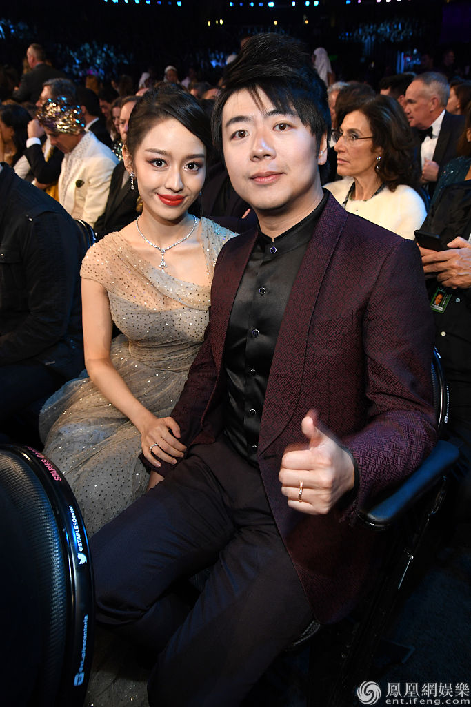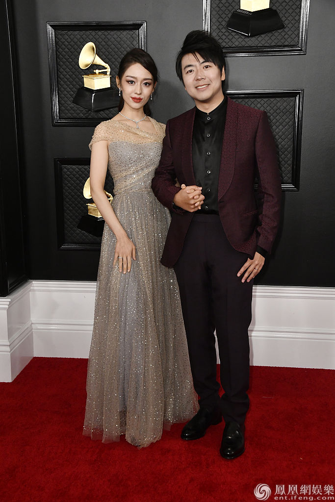 当地时间2020年1月26日,洛杉矶,第62届格莱美颁奖典礼。郎朗和娇妻吉娜·爱丽丝(Gina Alice)秀恩