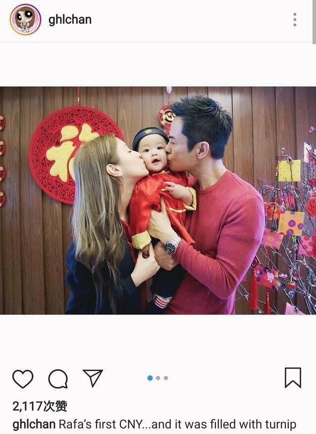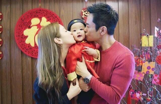 新年期间郑嘉颖晒出了一家三口的合照,照片中郑嘉颖和妻子陈凯琳抱着儿子,并亲吻儿子的脸庞,看上去十分有爱。