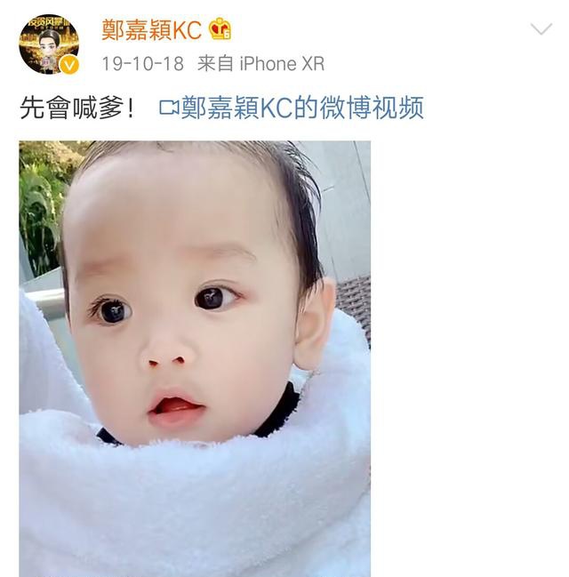 这不是郑嘉颖第一次“晒”孩子了,2019年就连发两个动态,并配上文字“先会喊爹,后会叫爸”。