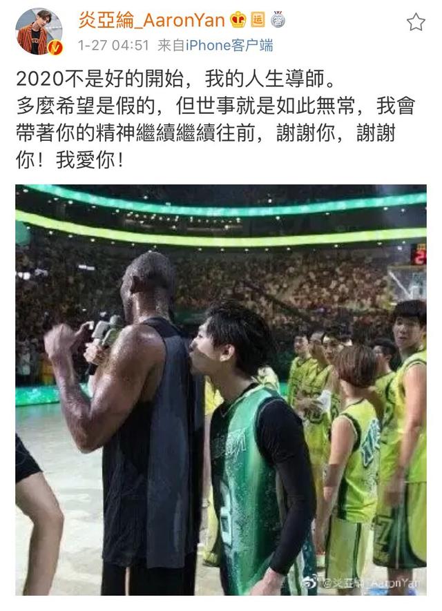 炎亚纶晒出了一张自己站在科比的身后,偷偷亲吻他背部的照片,那场景和氛围看上去还是那么有爱,只可惜物是人非。炎亚纶称科比是他的人生导师,和陈赫一样,他感伤2020不是好的开始,但他显然积极多了:“我会带着你的精神继续继续往前,谢谢你,谢谢你!我爱你!”