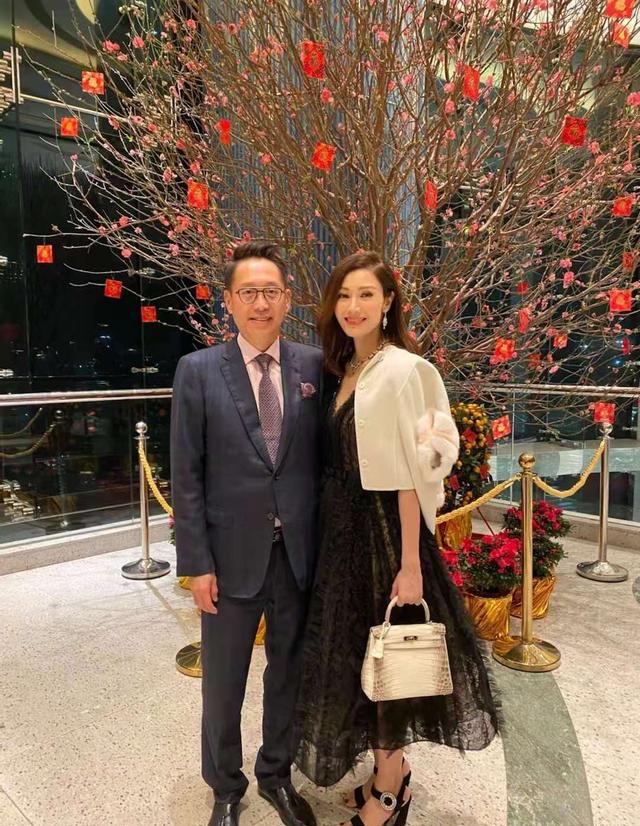 夫妻俩的合照中,李嘉欣换了一件衣服,应该是夫妇俩参加了聚会,李嘉欣身穿黑色的连衣纱裙,搭配白色的短款外套,手拿着一个奢侈品包包,许晋亨手搂着老婆,大概不善于拍照,姿势有些僵硬,但表情是甜蜜幸福的。
