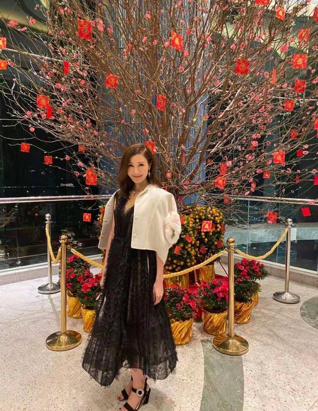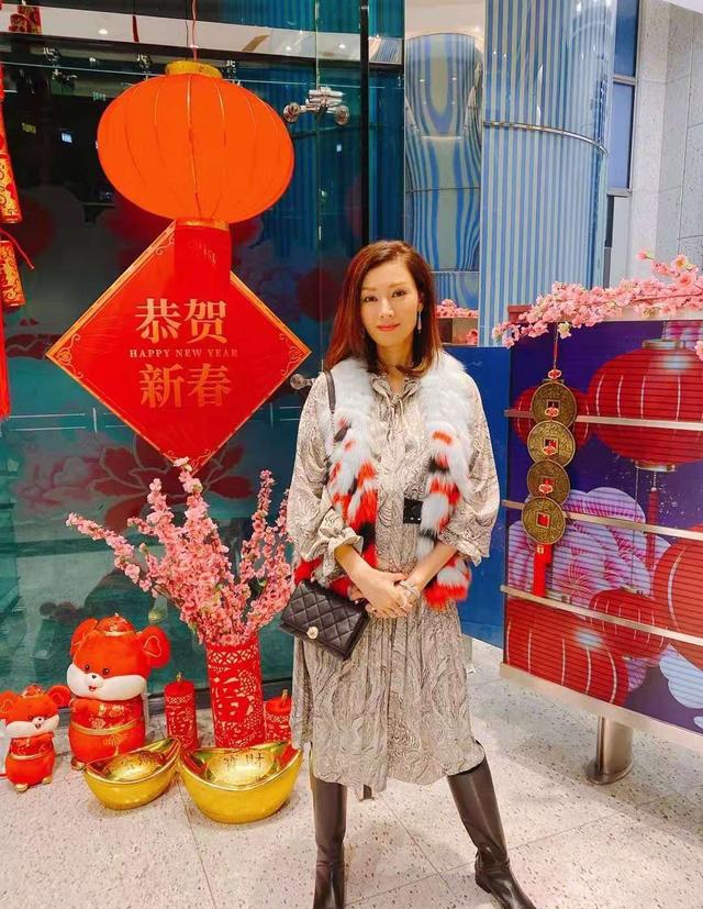 李嘉欣这套衣服显得整个人贵气十足,后边的背景非常有过年的气氛,今年50岁的李嘉欣看起来容颜未老,气质不减当年。