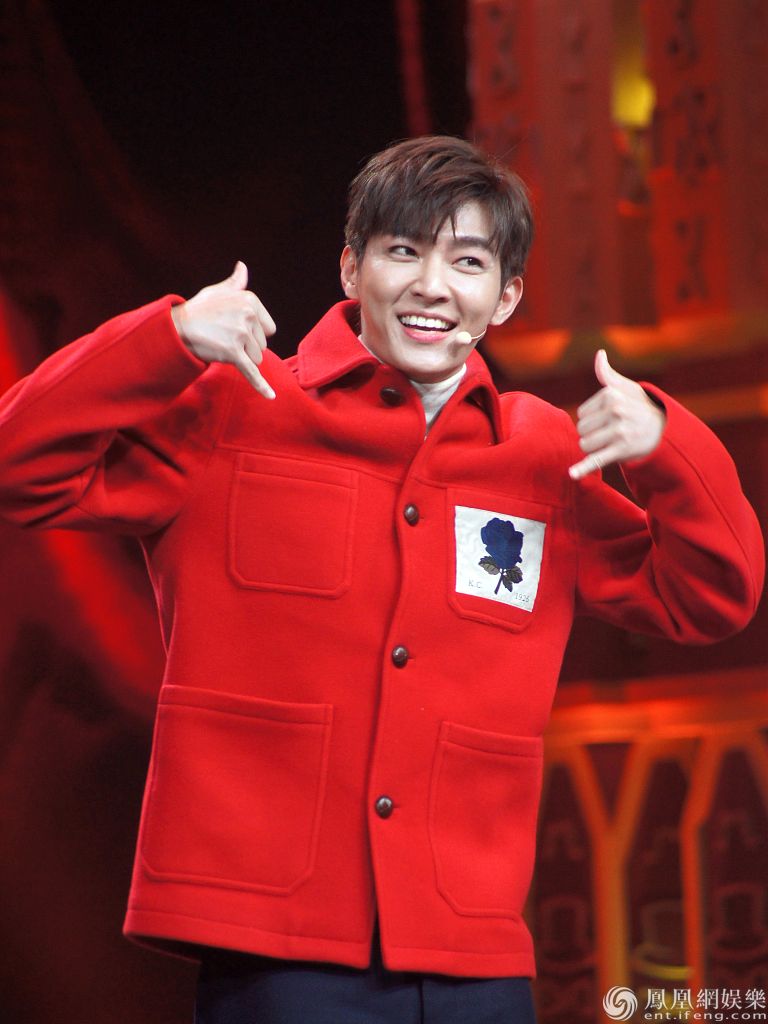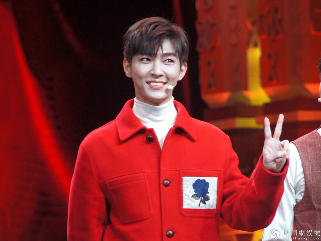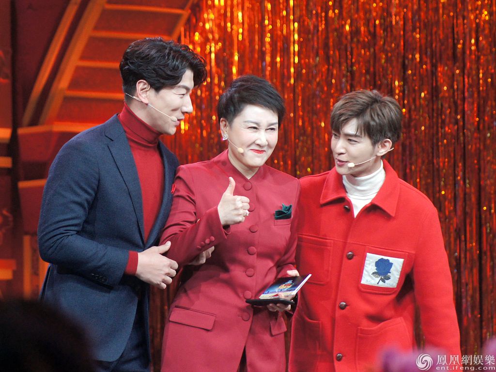 2020年1月25日,北京,《喜剧之夜》节目喜庆开播。炎亚纶、张凯丽、张亮等明星纷纷亮相,表演节目《我是主考官》。炎亚纶身穿红色外套青春活泼,对镜比“六”动作呆萌可爱;张亮穿红色高领毛衣身材高大;张凯丽穿红衣留短发造型清