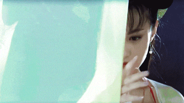 嘴巴也很特别,十分古典的心形唇,嘴角略向下垂,带着点不高兴的意思,完全没有讨好感,中和了眼睛带来的柔媚,整体形象又硬了几分。