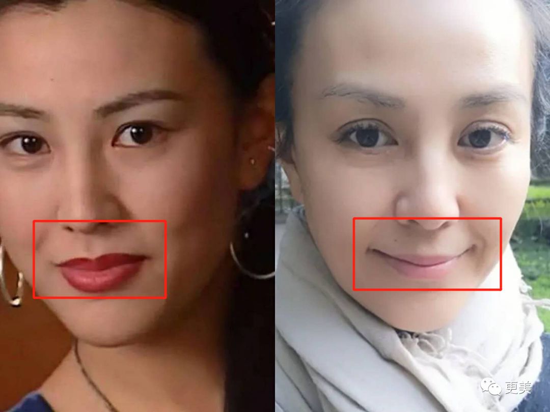 可能因为年纪大以后嘴唇就会变薄,朱晏的人中逐渐变长,当然,也不排除do了微笑唇。