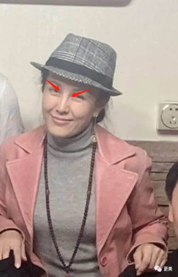 苹果肌可能做过填充,两边的脸蛋笑起来鼓鼓囊囊。