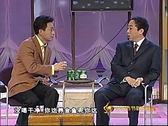 还有一对经典cp冯巩和牛群,他们俩搭档的相声《有话坐着说》,用一把讲真话的椅子撕下虚伪人物的伪装。