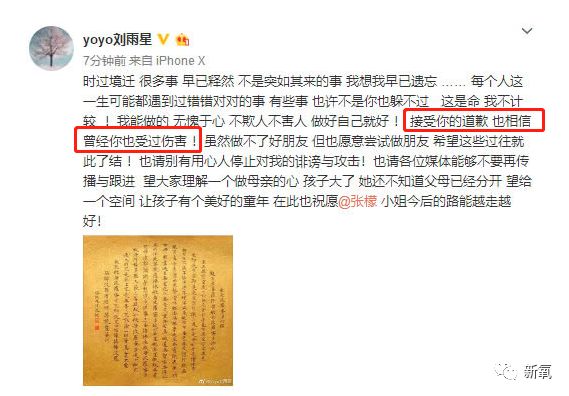 刘雨欣接受了道歉,还表示“相信曾经你也受过伤害。”