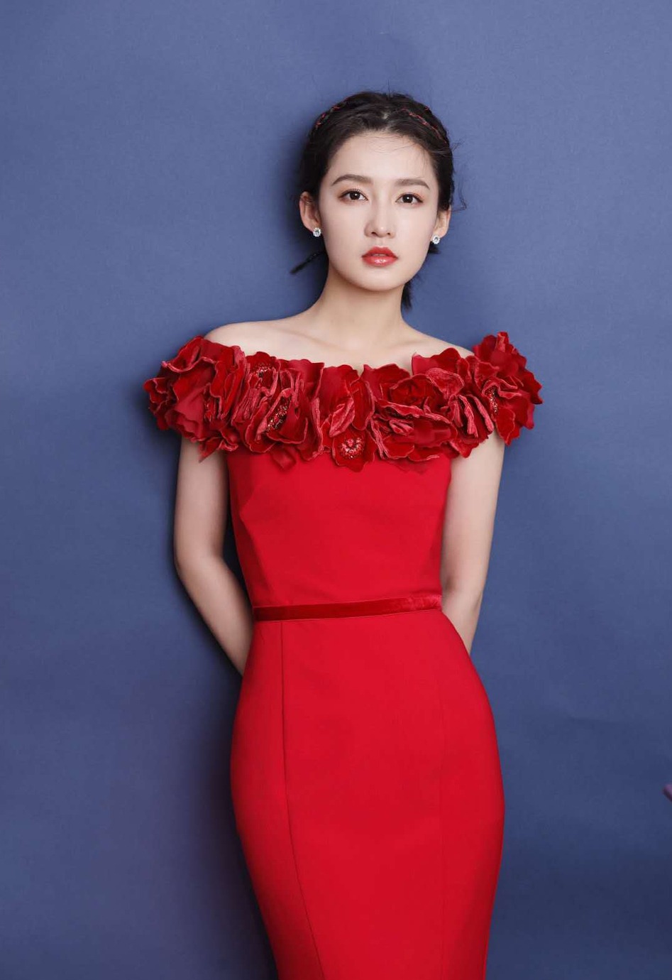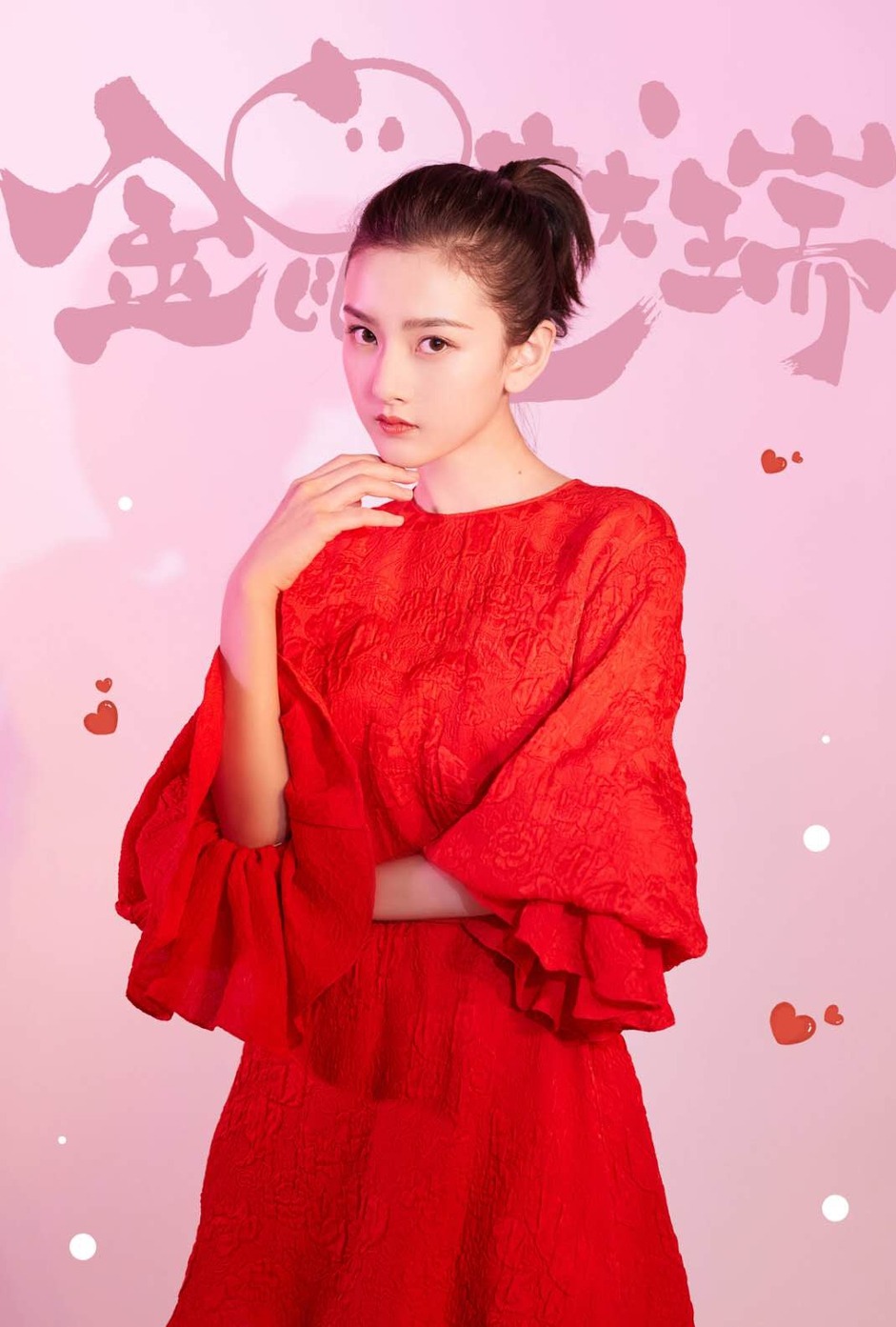鞠婧祎红色欧式公主裙,头戴同色蝴蝶结,复古可爱。