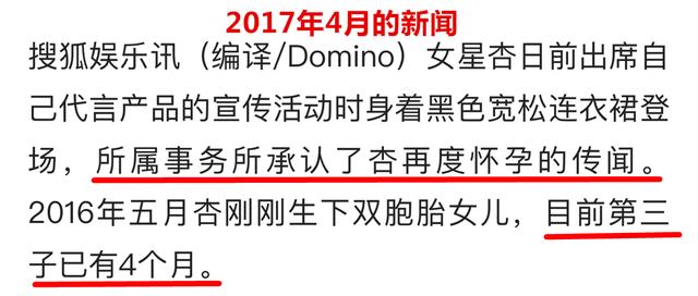 而且同一时间段,杏承认已怀第三胎。