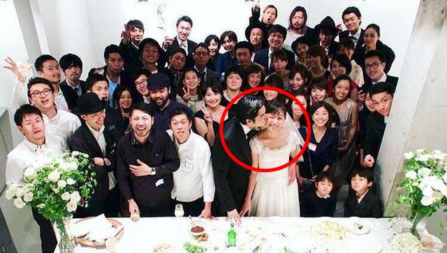 就连婚礼合照上,都是如此。
