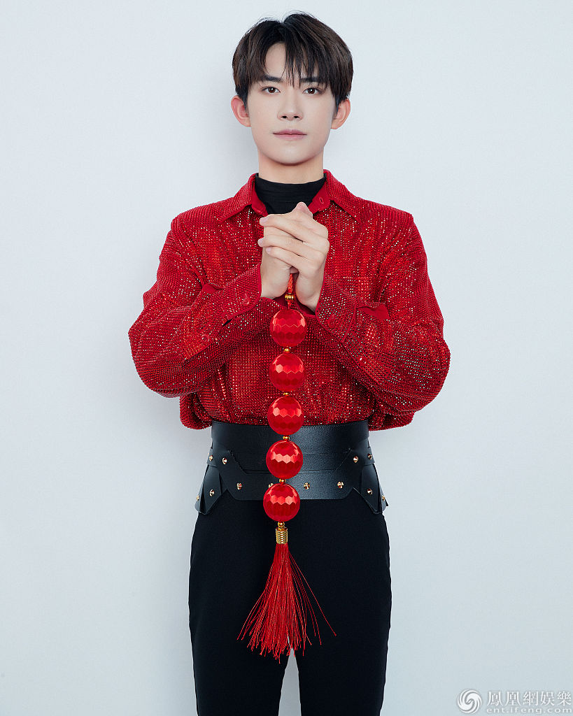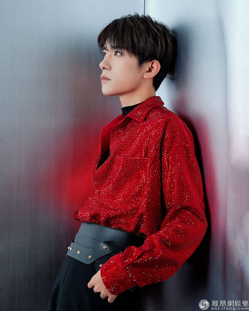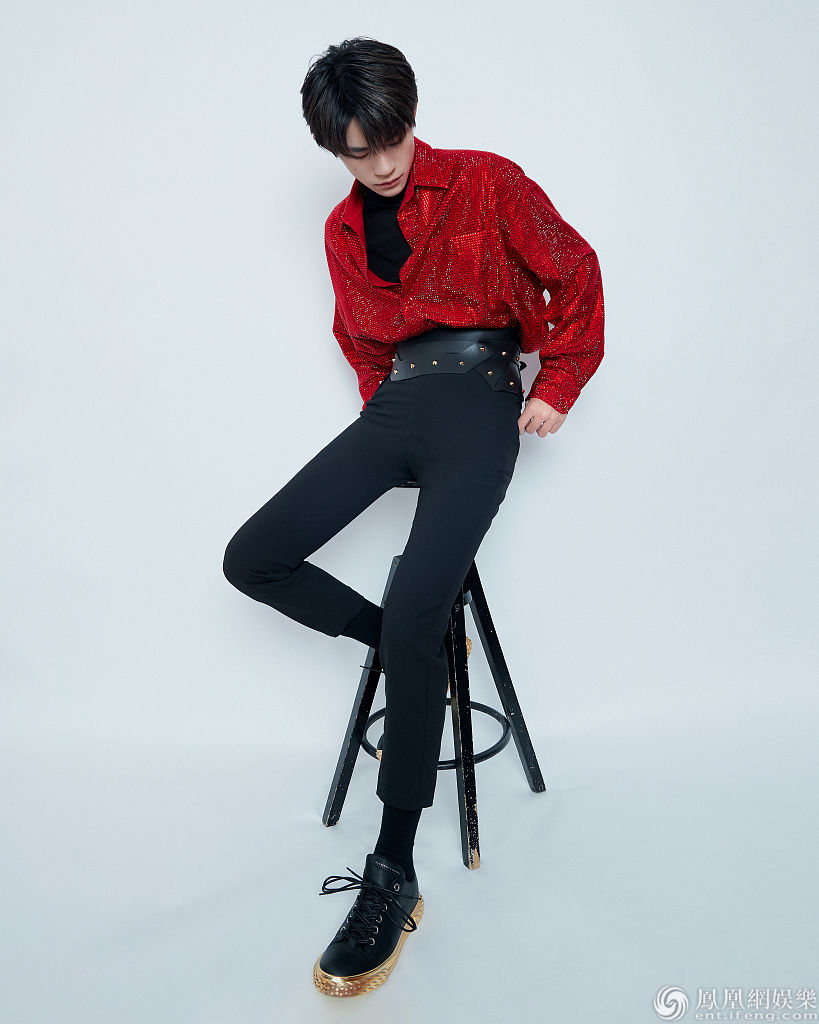2020年1月24日,北京,易烊千玺录制2020年央视春晚表演现代舞《青春的起点》,拍摄写真。他身穿红衣黑裤,铆钉点缀黑色皮质腰封格外吸睛,朋克感十足又透露出不