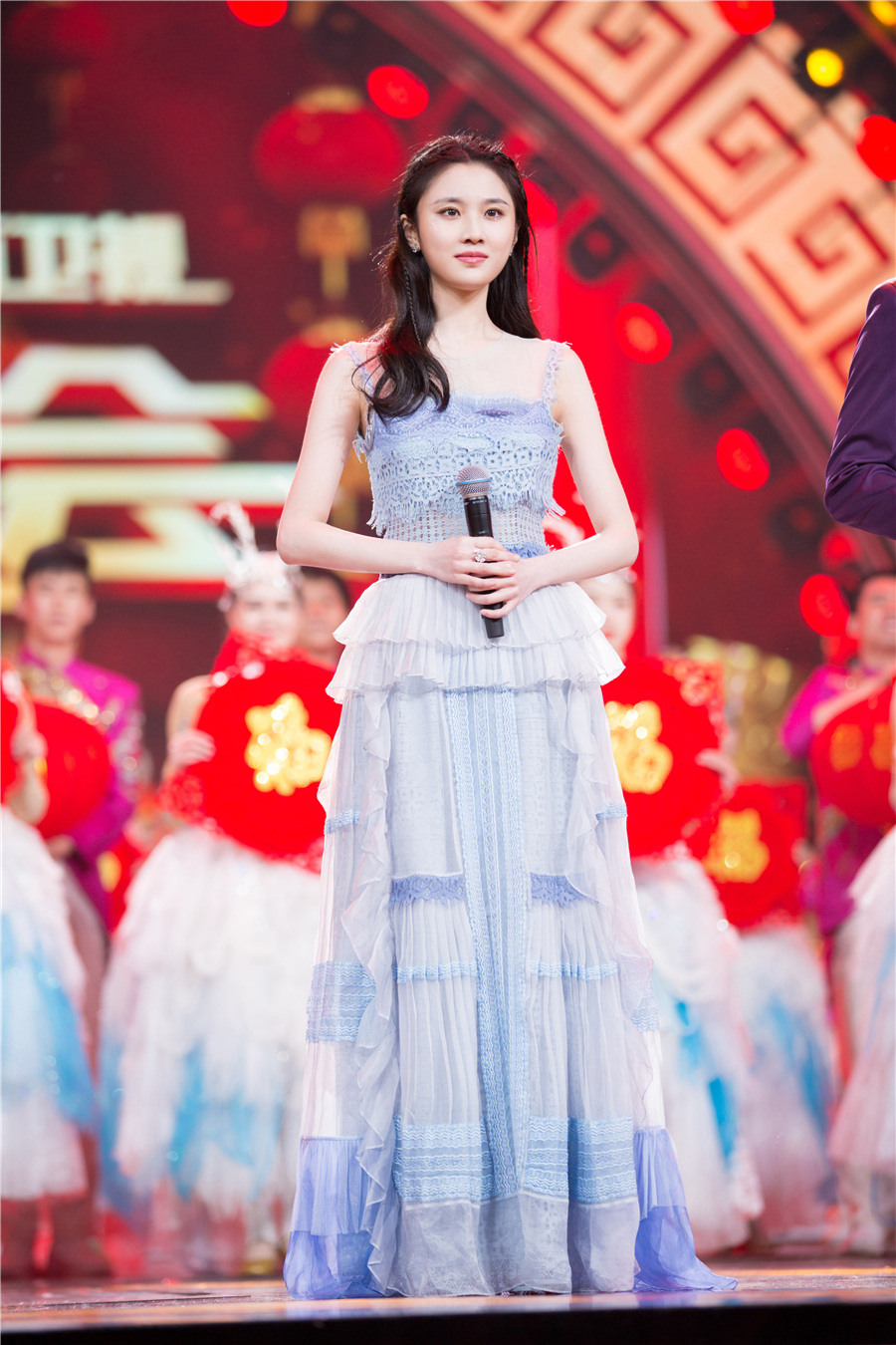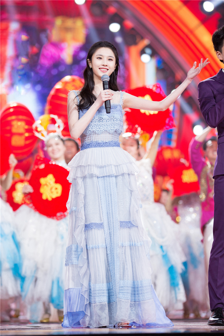 当晚,张慧雯一袭蓝色蛋糕裙亮相,仙女辫+闪妆的搭配温柔不失灵动。虽是首次从演员跨界主持,但毫不怯场,与搭档刘仪伟老师配合十分默契,还逗趣分享前辈邓超“江西大骄傲”称呼的由来,抛梗接梗诙谐自如,现场氛围喜庆祥和。