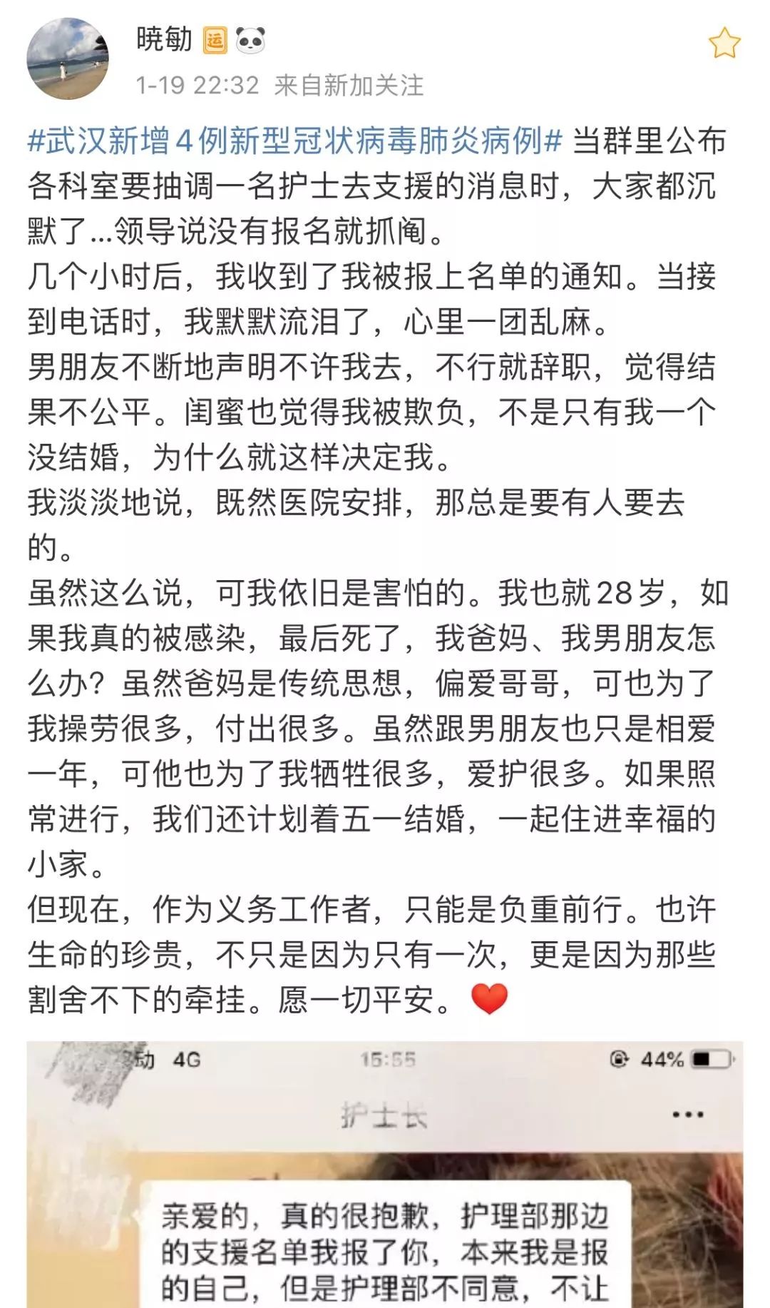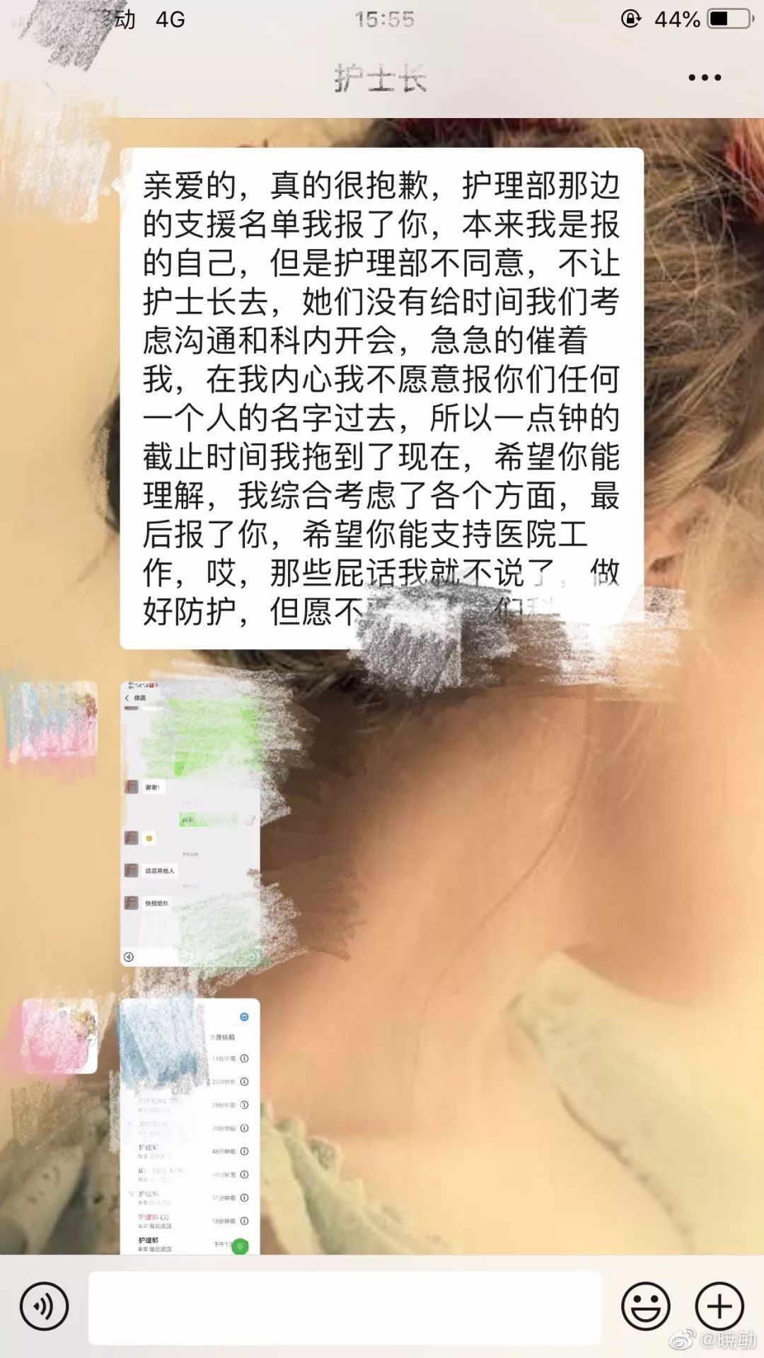 她是一名护士,被抽调去一线支援。其实,她的护士长本来报名的是自己,但由于护理部不同意,只能选择了能力资深的她前往救治。