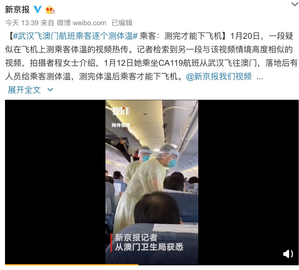武汉飞往澳门的航班乘客,也要经过体温检测后才能下飞机。