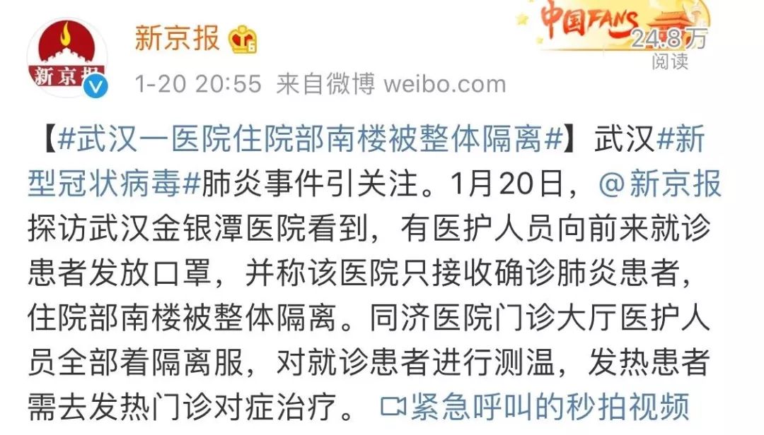 就在1月20日,武汉一医院住院部南楼被整体隔离。