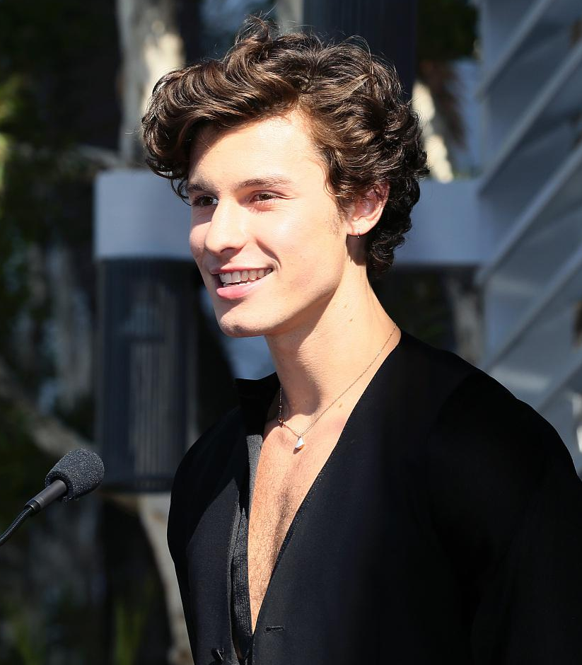 “萌德”肖恩·蒙德兹(Shawn Mendes)一身黑衣登台发言男神范儿十足。