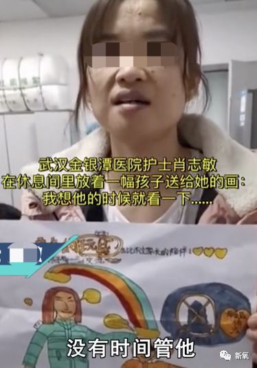 孩子因为当护士的妈妈早出晚归,都见不到面,希望能和妈妈说说话,就给妈妈送了一幅画,画上画着妈妈和孩子。这样护士妈妈想他的时候可以看一看画···