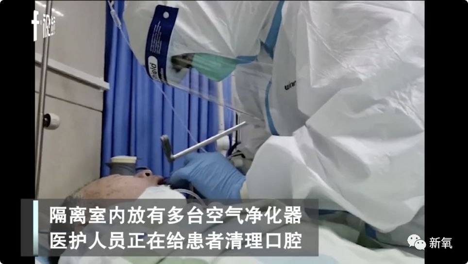 隔离室内放着许多空气净化器,医生们依然需要给患者清理口腔。行动不便的患者,医护人员还给他们准备了便盆。